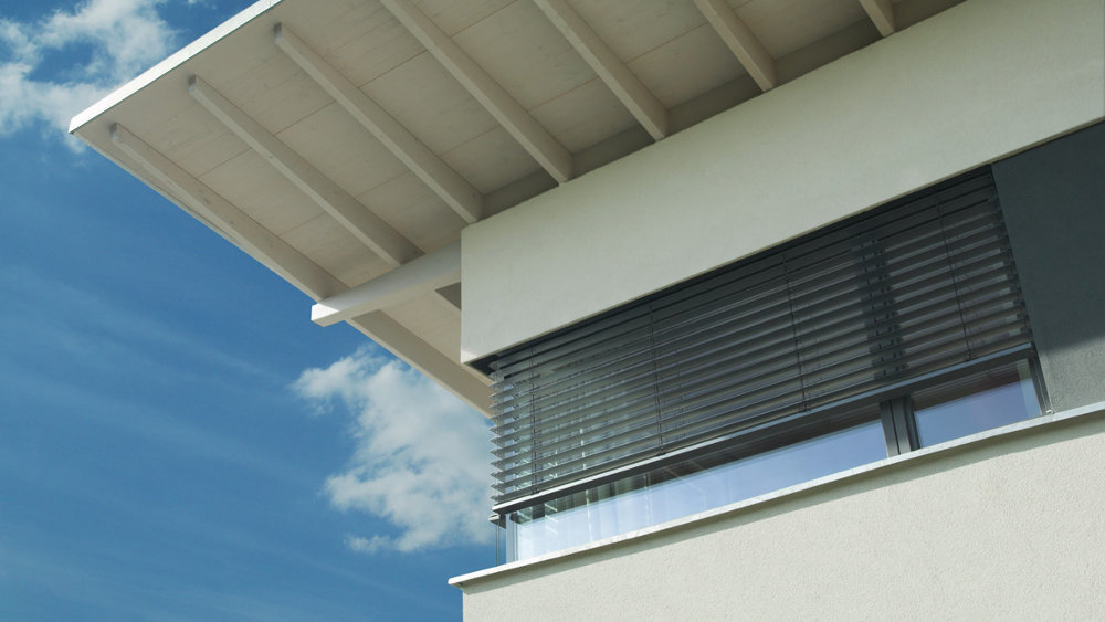 Diese Fassaden-Raffstoren gibt es in einer extra windstabilen Ausführung, die Windgeschwindigkeiten bis zu 80 km/h Stand halten.